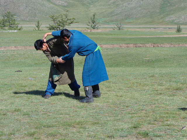 embarquei no dia 21 de agosto com destino a Frankfurt. de lá, parti para Pequim. quando me sentei no avião da Air China, senti que estava, finalmente, a caminho das férias. partia em direcção o oriente. jantei, espreitei os filmes e, quando me começava a chegar o sono, reparei na luz imensa que vinha da minúscula frincha da janela. para mim, eram duas da manhã e a luz áquela hora absurda foi o meu primeiro choque. passei as horas seguintes numa espécie de vigília dormente. passadas umas horas, estava perdida no tempo mas ofereciam-me o pequeno almoço. não faço ideia que horas eram, mas o meu corpo dizia-me que fazia pouco sentido estar com uma omelete à frente naquele momento. abri a janela. lá em baixo estava a paisagem mais extraordinária que jamais vi do alto de um avião - a estepe mongol. atravessei grande parte da Mongólia pelo ar, antes de lhe por os pés no chão. entramos na China, sobrevoamos as montanhas gigantes e quase assustadoras, vimos a grande muralha - que afinal não é só grande, é inacreditável. aterramos. ainda pasmada, esperei pacientemente pelo próximo voo para Ulaanbatar. cheguei ao destino por volta das seis da tarde locais do dia 22 de agosto. estava sete horas no futuro relativamente à minha hora orgânica. não tive jetlag. quando cheguei ao hotel, verifiquei que ficava mesmo ao lado da meta do mongol rally. ri. como eu gostaria de chegar ali um dia montada num carro impossível depois de atravessar meio mundo! aumentou-se-me a vontade de o fazer, confesso. os primeiros dias foram de descoberta do grupo, da consciencialização da distância e do confronto com a dureza da viagem. a primeira surpresa foi descobrir que a nossa porta de entrada no Gobi tinha um imenso aroma a cebolinho. eram quilómetros infindáveis de terra coberta por flores de em tom lilás à entrada de um dos sítios que mais vontade tinha de conhecer no mundo. foram dois dias iniciais cheios de surpresas e imprevistos. e gargalhadas, muitas gargalhadas. já não me ria assim - a acabar em lágrimas - há meses. demasiados meses! vi a luz mais bonita da viagem em Baga Gazrim Chuluu, fui engolida por uma nuvem de areia em Tsagaan Suvarga, lavei-me em casas de banho públicas em Dalanzadgad e, ao quarto dia, chegamos a Bain-Dzak. sentei-me sozinha em frente ao colosso que são as Flaming Cliffs. quase chorei perante a obra de deus, ou do universo, ou sei lá de quem. contive-me. apreciei o silêncio. afoguei-me nele. fiquei ali. absorta. comovida. aquele momento seria eternamente só meu. a custo, levantei-me. e voltei à vida. caminhamos por entre a terra vermelha e reencontramos o caminho da viagem mais à frente. chegamos ao acampamento. tomei banho num chuveiro improvisado, no meio do nada, enquanto um vento forte e quente tomava conta de tudo. os minutos que estive debaixo de água foram de uma paz imensa. assisti, de fora, a um ritual Xamã e fui invadida por um cansaço incontrolável que me fez quase perder os sentidos antes de chegar à pequena cama que me estava destinada. acordei por volta das cinco da manhã para as trinta horas mais mais extraordinárias de toda a viagem. depois do pequeno almoço, rumamos a Konghoryn Els, as dunas de areia que cantam. a viagem é belíssima, o Gobi é inexplicável, as palavras não chegam. chegamos ao nosso acampamento ao início do final da tarde. em frente ao nosso ger levantavam-se as enormes dunas de areia. o cenário era indescritível. andei em cima de um camelo durante quase três horas. o silêncio era só interropido por pequenas risadas aqui e ali. a paz era gigante. à chegada, sentei-me num pequeno tronco perdido a ver o sol cair. as cores no céu eram intraduzíveis. mais silêncio. (os sons interrompem-nos tanto, quase sempre!) o céu era omnipresente - aquele céu que parece tocar nas nossas cabeças, fazendo-nos insignificantes no meio do todo. no fim de jantar, a escuridão era apenas disfarçada pela luz ténue das lanternas. juntou-se-nos o chefe da família que nos acolheu e ouvimos a sua voz cantar histórias do deserto. quase chorei na penumbra enquanto bebíamos pequenos shots de vodka pura. adormeci embalada por uma enorme paz para acordar às quatro da manhã. estava frio mas tinhamos poucas horas até ao pôr do sol que queríamos ver lá em cima, sentados na crista da duna. fizemo-nos ao caminho quase perdidos por entre pequenos braços de rio intercalados por zonas de lama e arbustos secos. por fim, chegamos à zona de areia. depois subimos, e subimos, e subimos. todos pensamos desistir a meio. mas todos chegamos ao fim. lá em cima, com as pernas doridas e os pulmões a gritar, sentamo-nos no topo do mundo com o sol a acordar à nossa frente. eram cerca de seis da manhã do dia 27 de agosto e estava a viver um dos momentos mais simples e bonitos da minha vida - o sol tomava conta do manto imenso de dunas de areia do Deserto de Gobi. depois de quase uma hora imóvel de pasmo, desci-as. estava feliz!